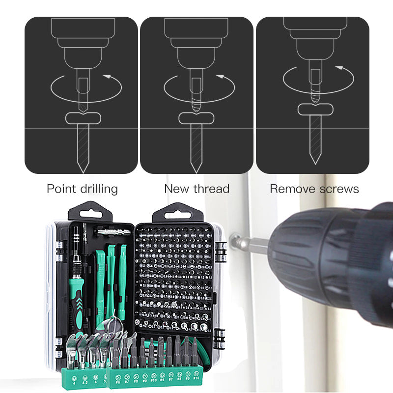 • Drill, thread or remove stubborn screws by using the taps with a electric screwdriver