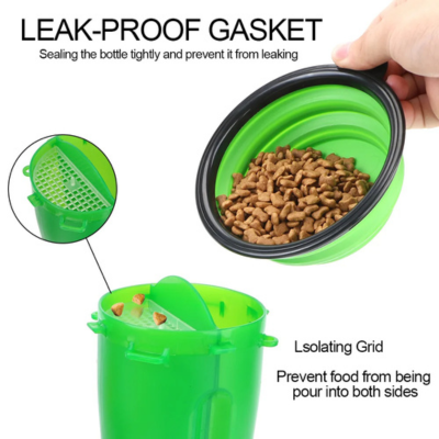 2-in-1 Design: Separate chambers for water and food, perfect for feeding and hydrating your pet on the go.
