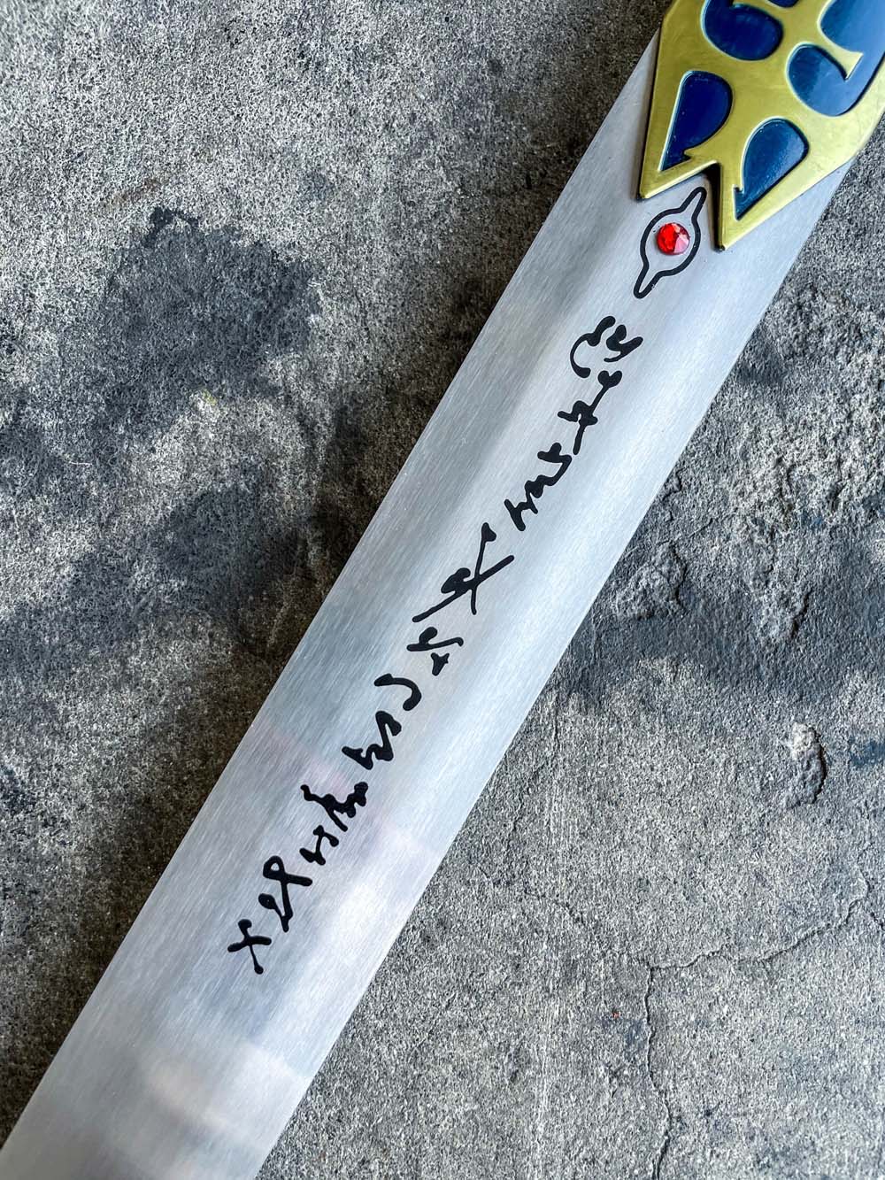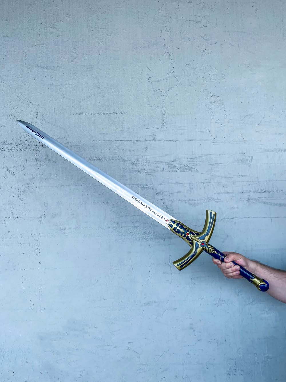 Engraved in the sword is "Whoso pulleth out this sword of this stone is rightwise king of all England"