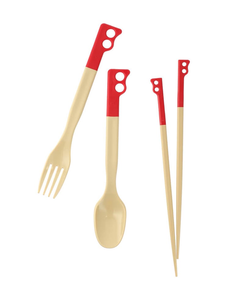 Enjoy your table coordination with the new standard outdoor tableware from Chums. This three-piece set of outdoor cutlery is highly portable and features the same design as the iconic Chums camper mug, with colorful hues and a distinctive two-hole handle. Perfect for camping, hiking, picnics, or even lunch boxes.