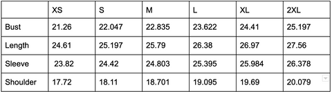 SIZE GUIDE (Inches):