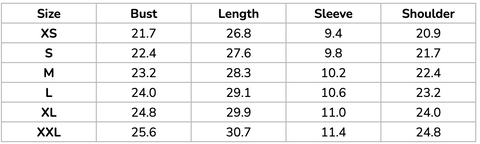 SIZE GUIDE (Inches):