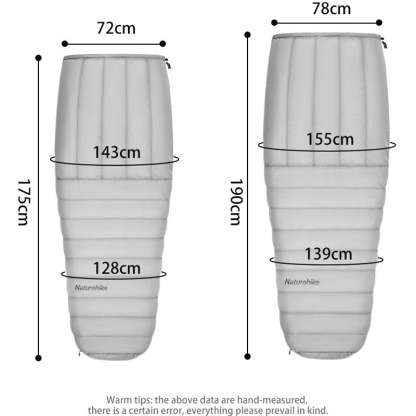 High Loft Insulation: Filled with 750FP white duck down, this sleeping bag offers exceptional warmth-to-weight ratio. The 90% down content ensures efficient insulation in cold conditions.