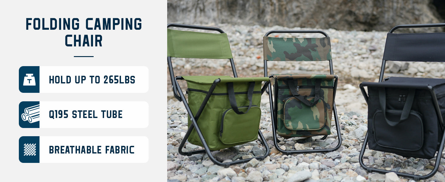 Designed for convenience, the chair includes a zipper opening and closing large ice bag, providing a unique twist to your outdoor gatherings. The backrest offers optimal support during activities like fishing or hunting. The double-layer structure of the Oxford cloth fabric ensures wear-resistance and high load-bearing capacity.