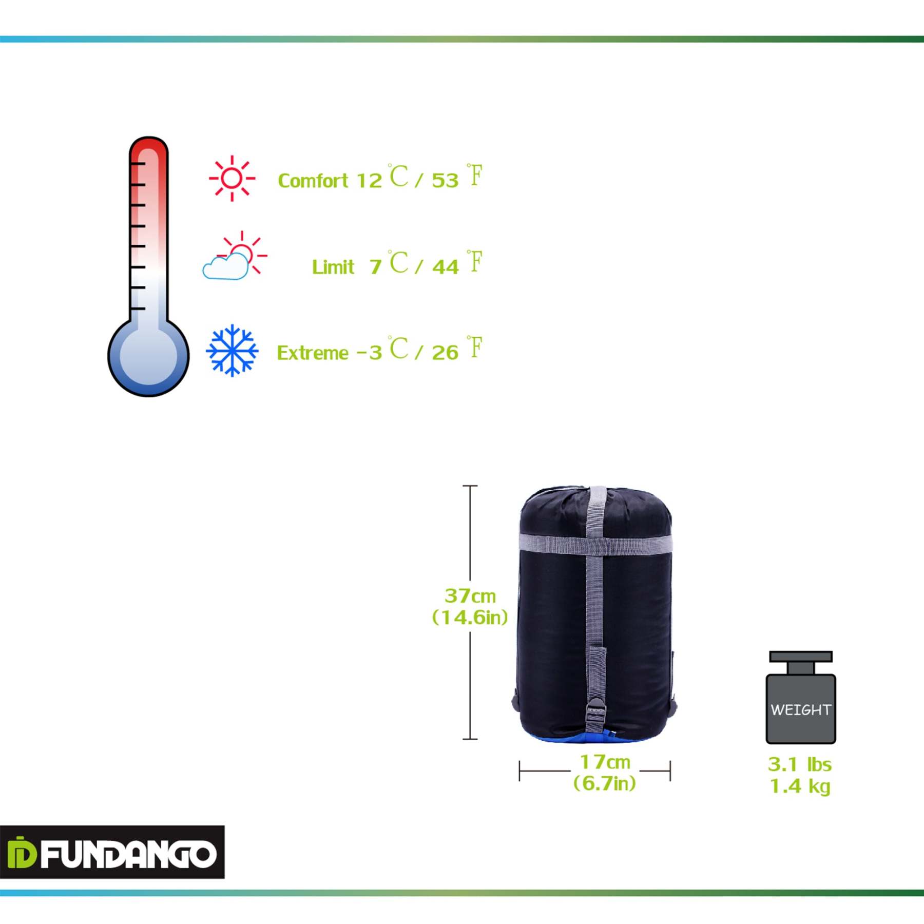 Temperature Rating: With a temperature rating suitable for three-season camping, the FUNDANGO ENERGY250 Sleeping Bag ensures you stay warm and comfortable in temperatures ranging from mild to chilly nights, allowing you to enjoy your outdoor adventures year-round.