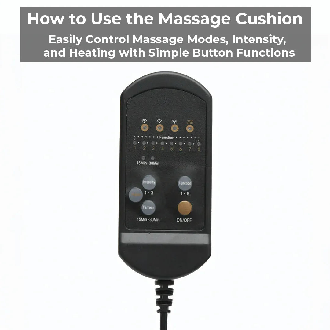After placing the cushion on your chair or car seat and using the accompanying charger to connect it to the power source, use the remote controller to choose the settings you like. As needed, you can turn on the heat feature and select from a variety of massage zones and intensity settings. Make sure the cushion fits comfortably for best results, and take advantage of a restorative massage whenever you want.