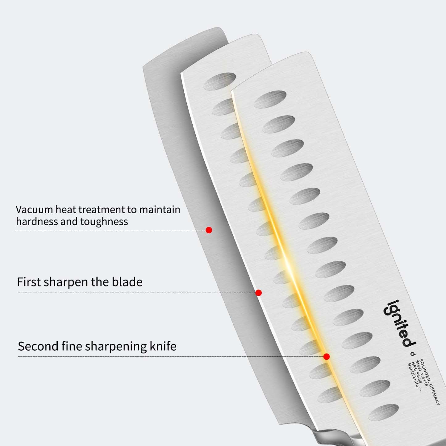 ignited Nakiri Knife with ABS Handle, Various Vibrant Colors Cleaver Knife