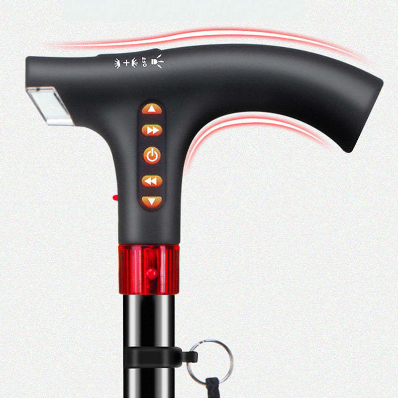 BLINKING RED LIGHT ALARM - To provide added safety, the walking stick features a blinking red light that acts as an emergency alert. This noticeable signal can be activated by the user to call attention to an emergency situation and summon help from passersby.