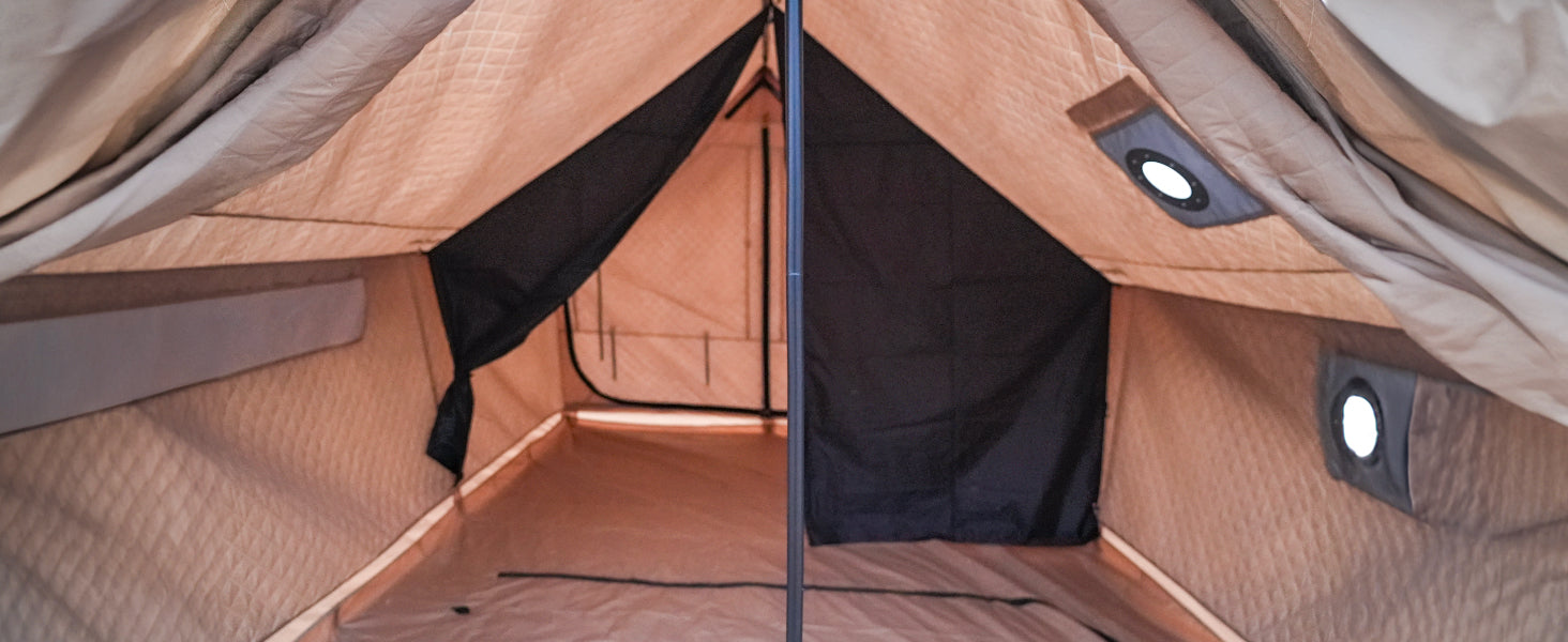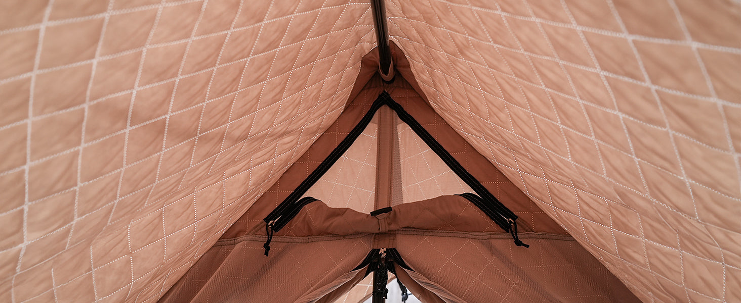 - The tent is made from ultrasonic-quilted fabric with a three-layer combination, including 100g of internal cotton, to effectively retain heat and keep you warm in winter conditions.