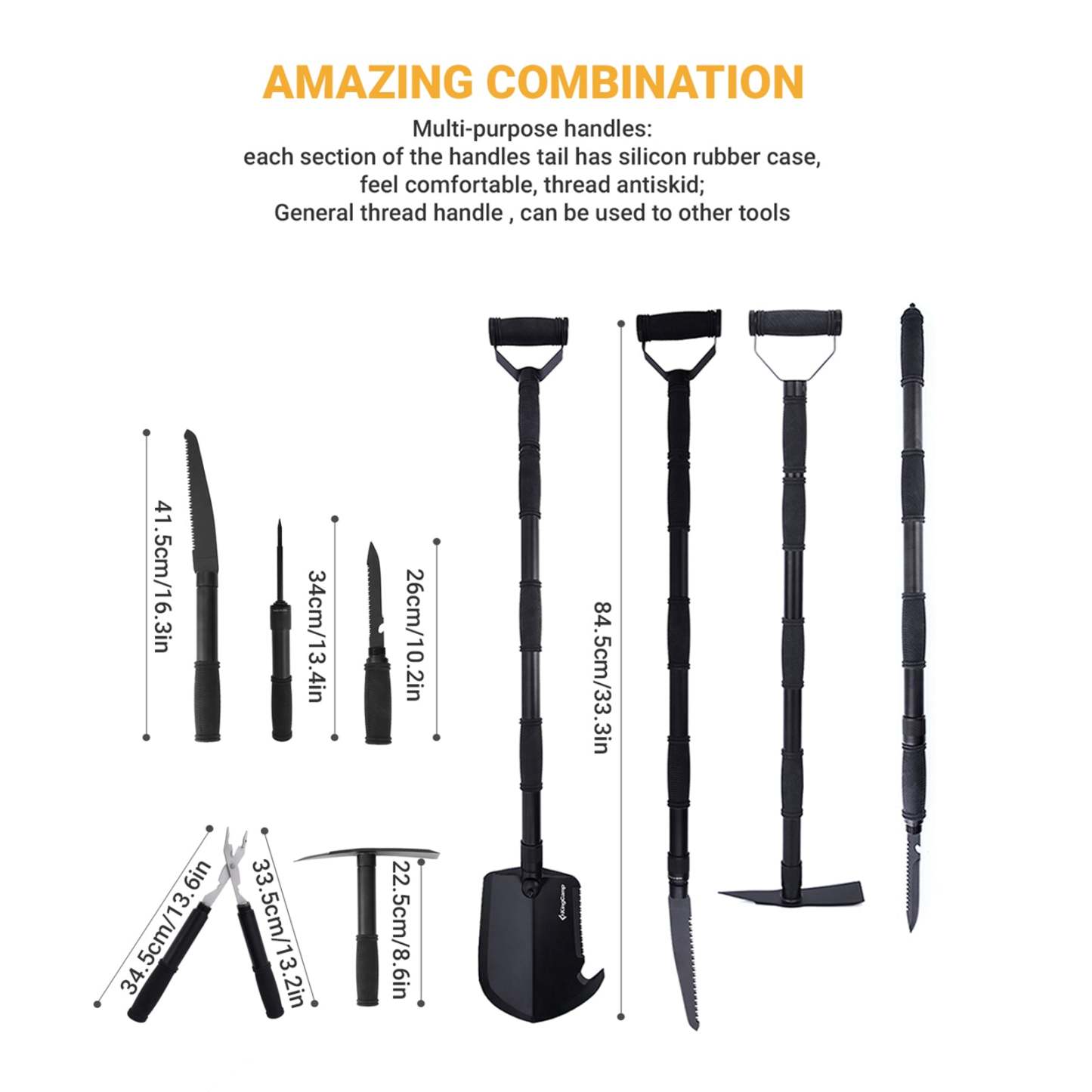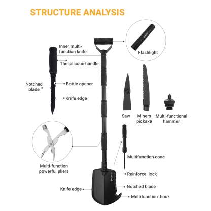 This multi-functional survival shovel is designed for those who demand the best in their gear. Its blend of durability, versatility, and convenience makes it an essential addition to your outdoor equipment.