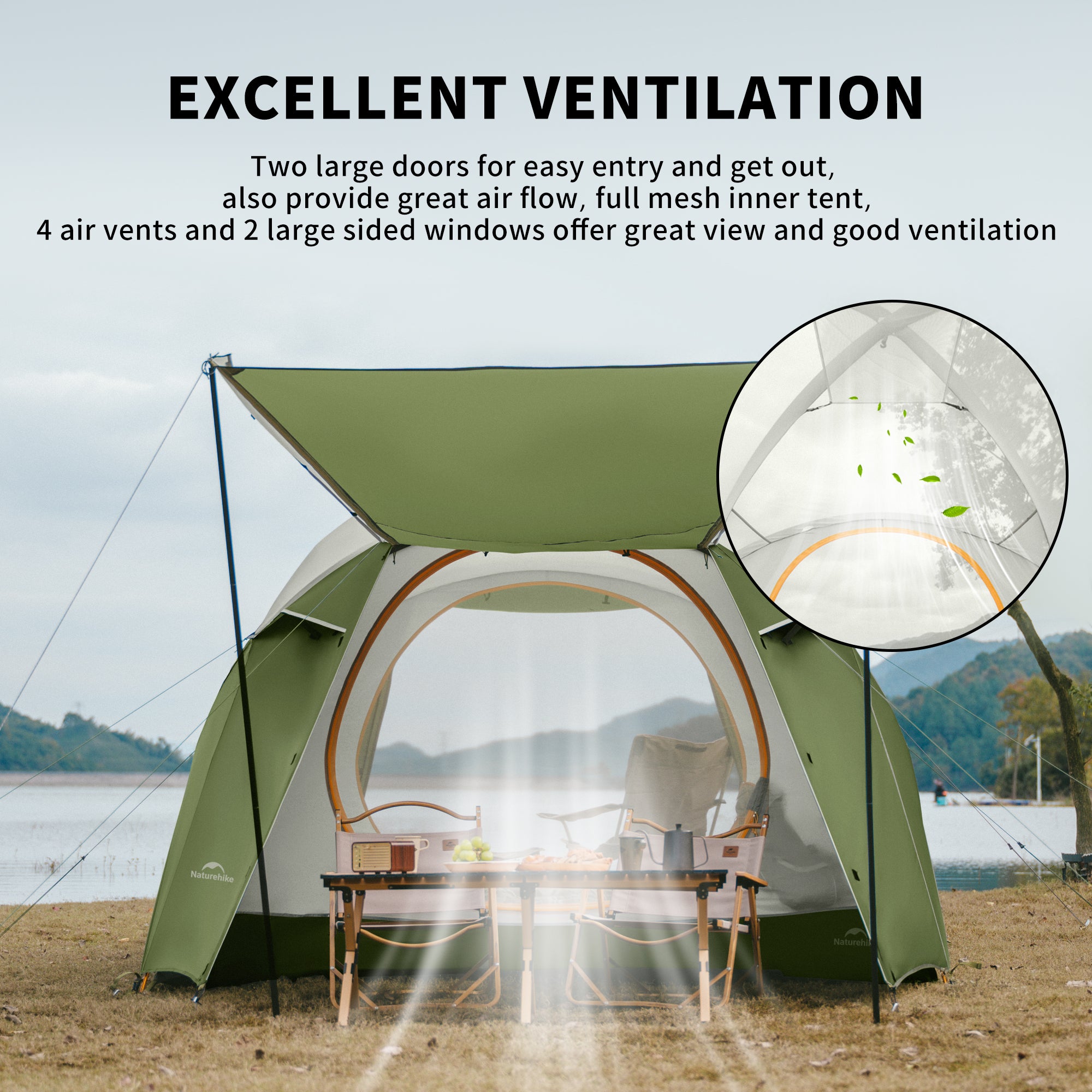Effective Ventilation: 'V' shaped side windows and ventilation windows prevent condensation.