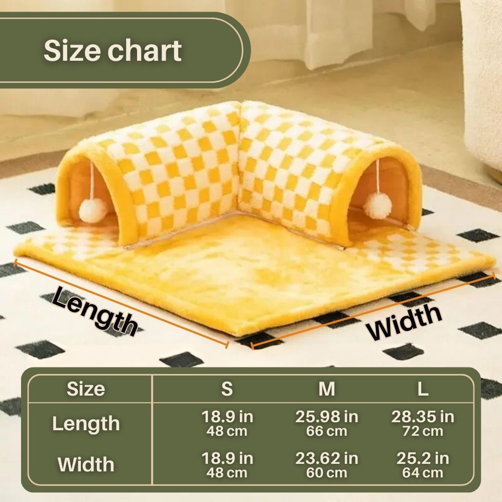 LuxPaws™ 2-In-1 Cat Tunnel Bed serves as both a play area and a bed, making it perfect for active and rest times. Cats can explore and nap in one spot, simplifying pet care.
