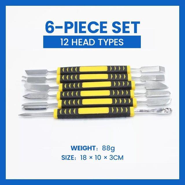 Double-edged design with sharp tips for easy insertion into small crevices and any tight spaces, And the shallow depth will not harm the parts inside. Six-piece set with 12 blades for every repair situation! For all your daily needs.