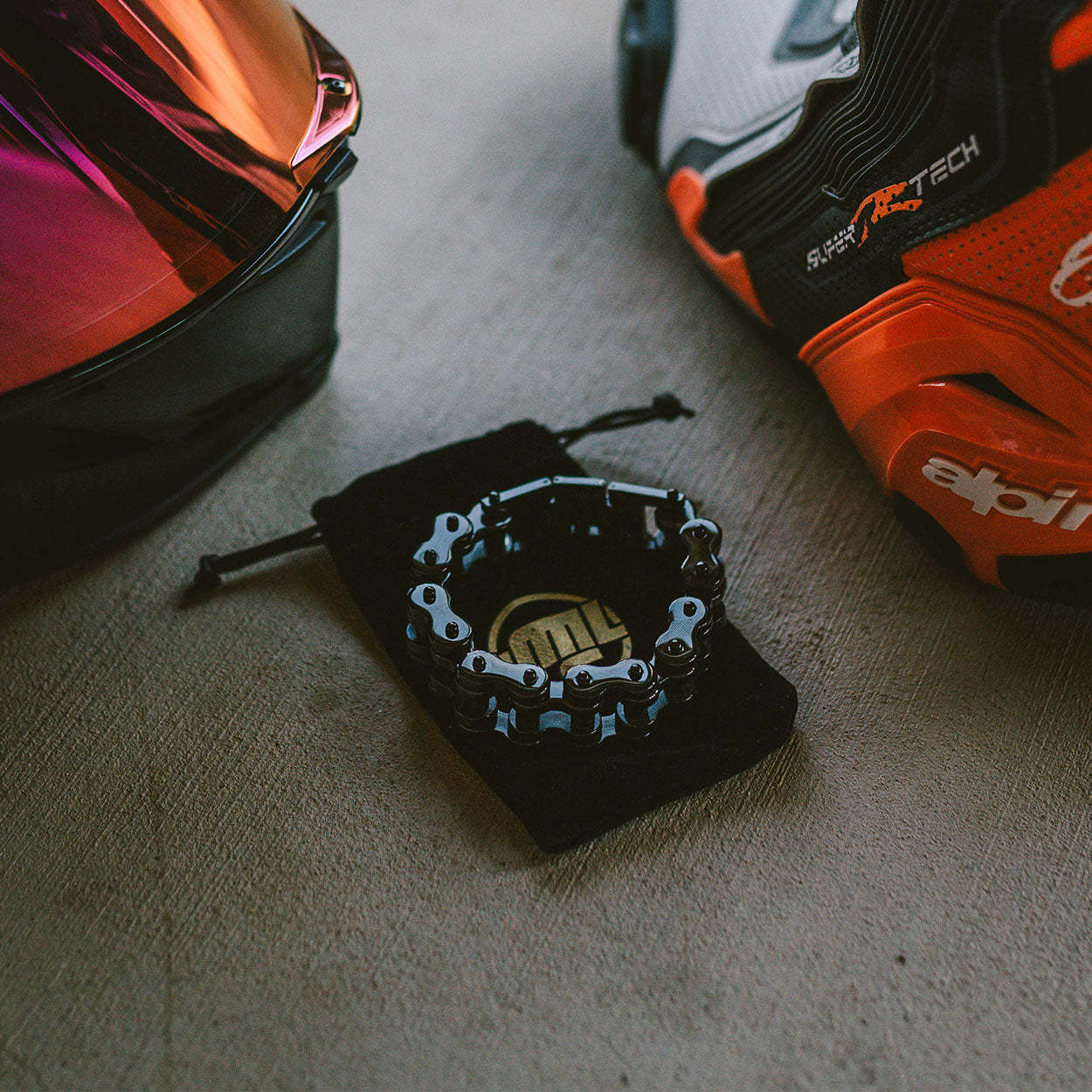 Beware, this chain is hefty and probably not for those with weak wrists. You'll also likely get stopped all the time by other riders asking where you got your sick motorcycle chain bracelet.