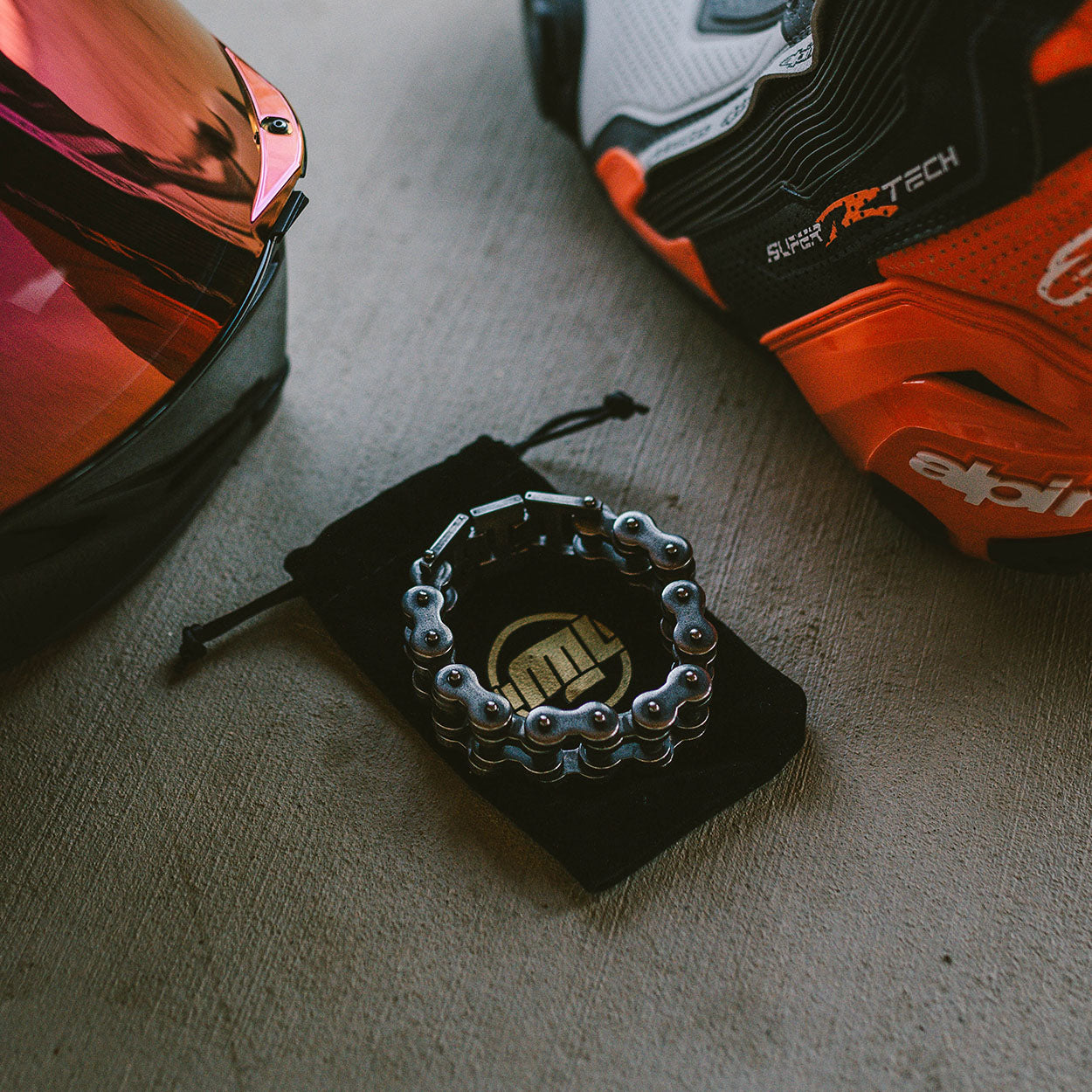 Beware, this chain is hefty and probably not for those with weak wrists. You'll also likely get stopped all the time by other riders asking where you got your sick motorcycle chain bracelet.