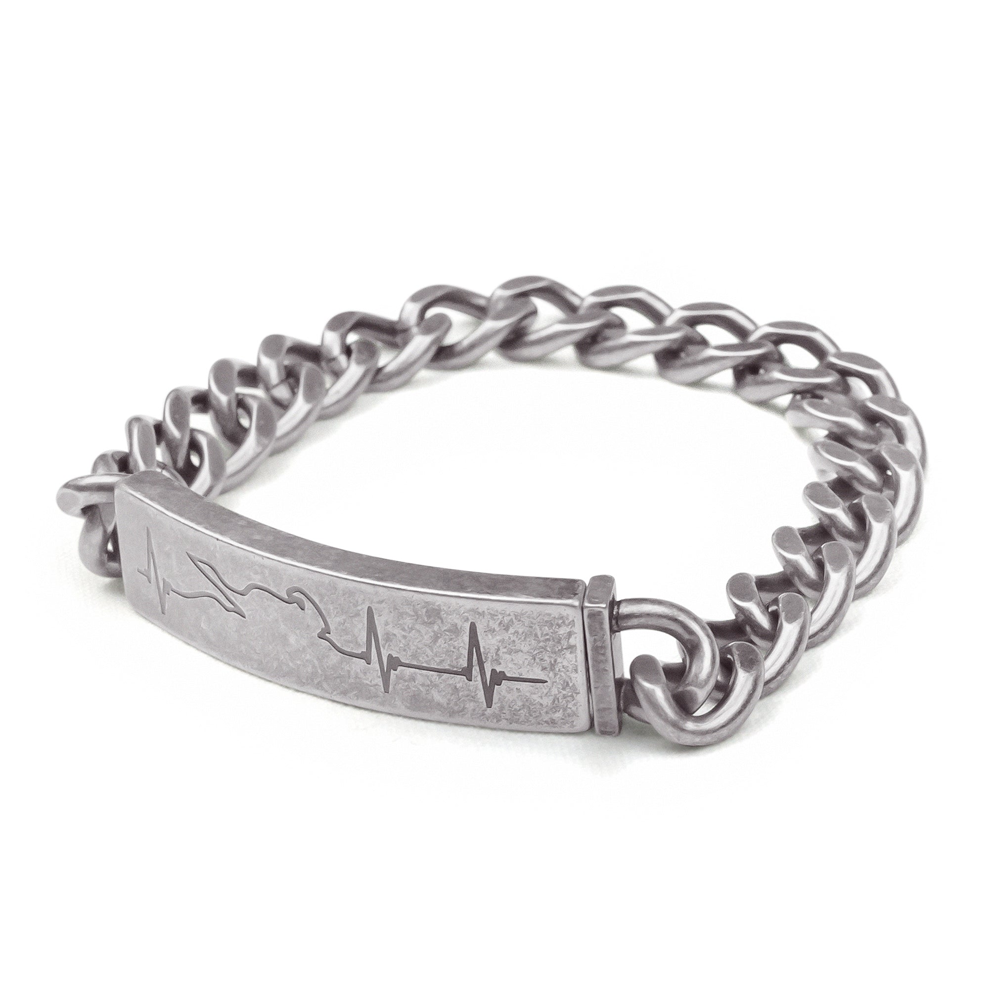 The motorcycle heartbeat bracelet is constructed from stainless steel and features a strong slide clip closure. This means it's durable and you won't have to worry about it accidentally opening and falling off.