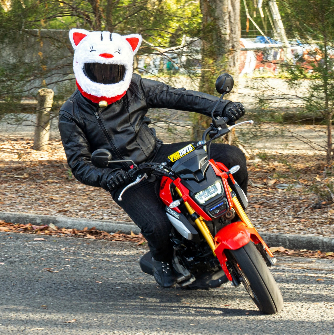 Grab your red and white cat motorcycle helmet cover today before we sell out!