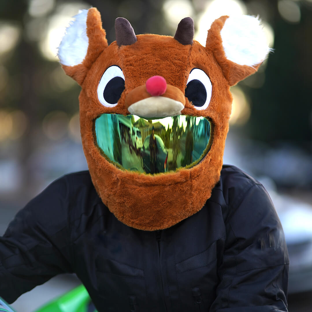 Your reindeer motorcycle helmet cover will not only turn heads but will also protect your expensive lid from dust, scratches and chipping!