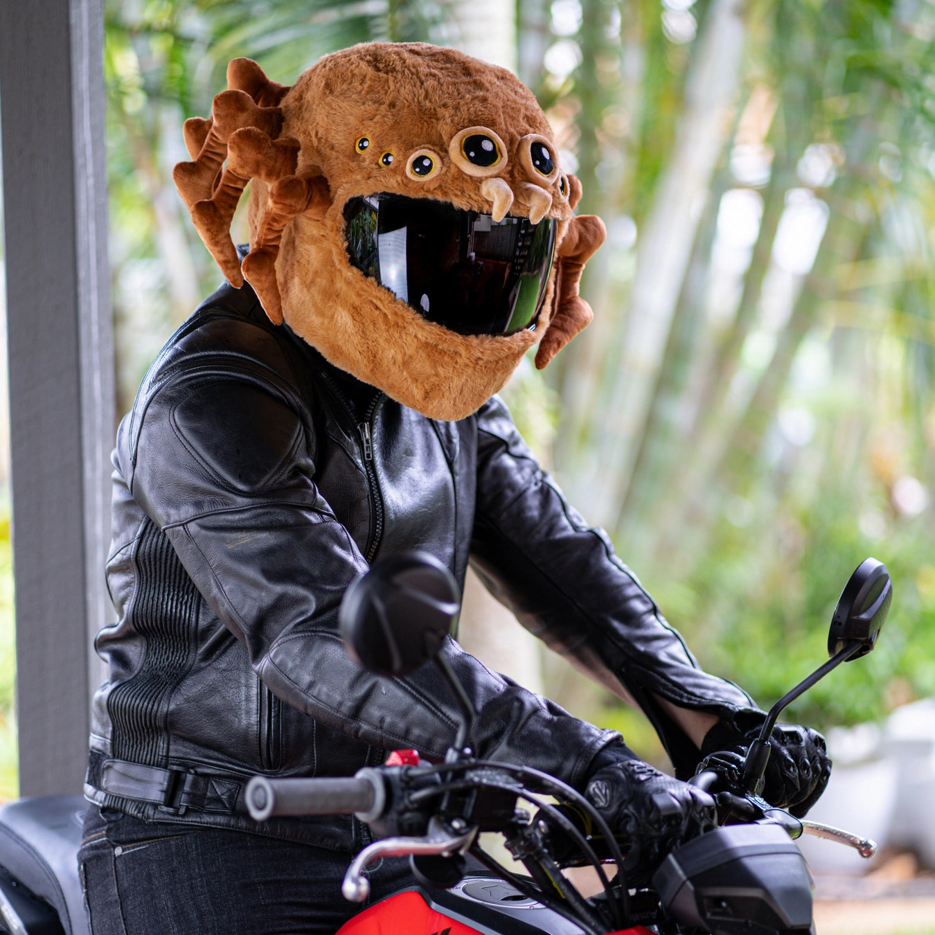 Introducing the Spider motorcycle helmet cover - the perfect accessory to make every ride just a bit more fun! This unique cover will make you stand out on the road with its head turning design complete with a big, cute eyes and long legs.