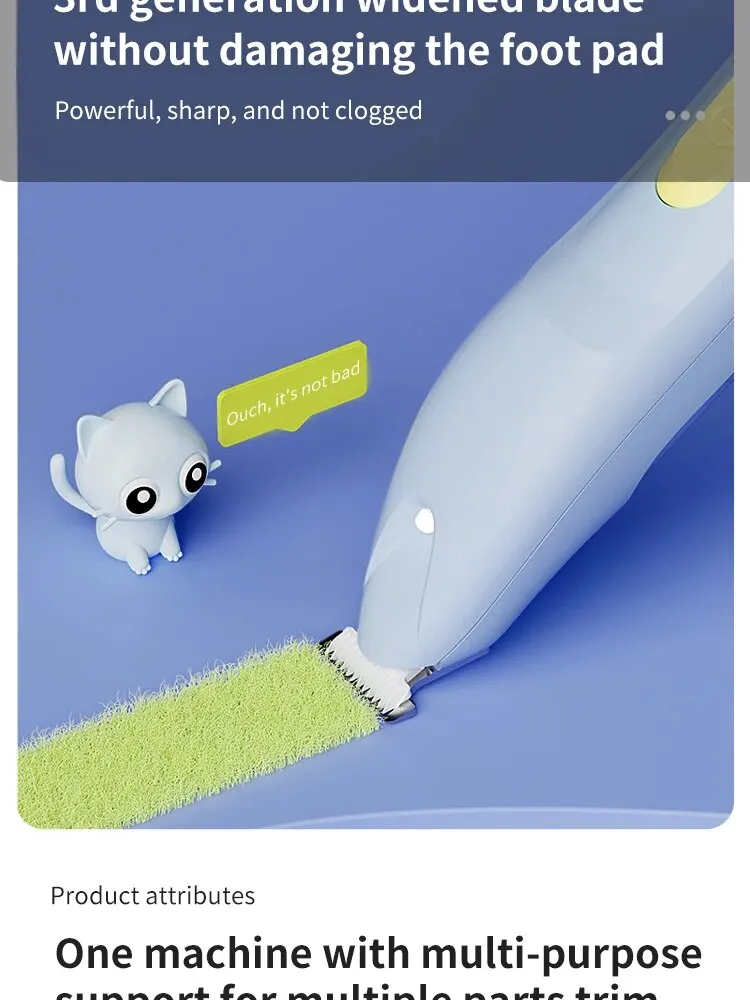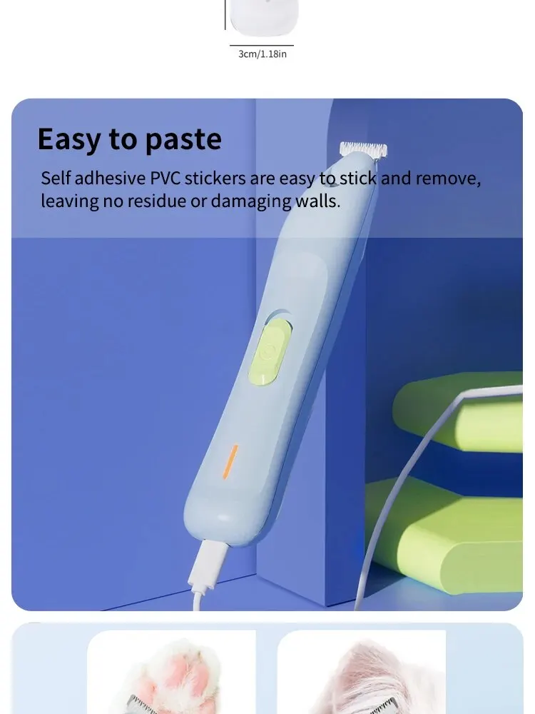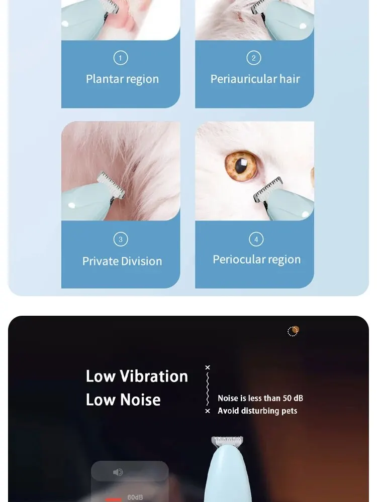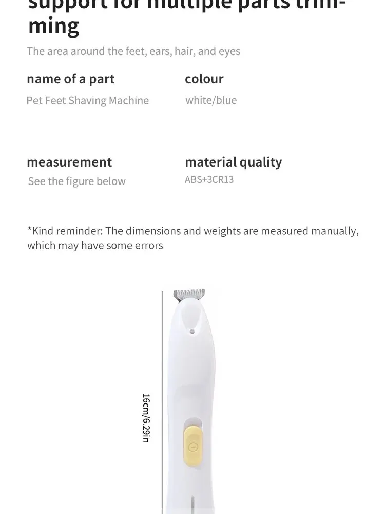 • Foot Hair Trimming :The trimmer is designed to trim hair on the feet, making it easier to keep your pet's nails and paws clean and trimmed.