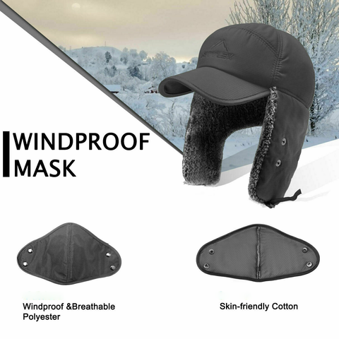 Plus, our winter hat with ear flaps comes with a detachable face mask so you can keep your nose and mouth warm on those freezing days.