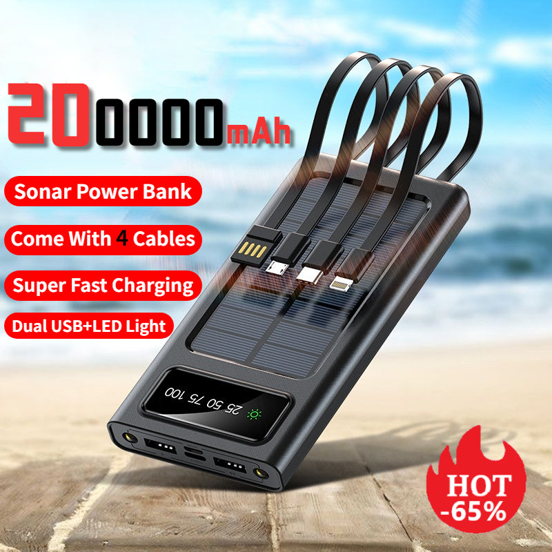 Never worry about dead devices again! This powerful 200000mAh solar power bank keeps all your devices charged while harnessing free solar energy. Whether you're camping, hiking, or traveling, you'll always have reliable power at your fingertips.![]()