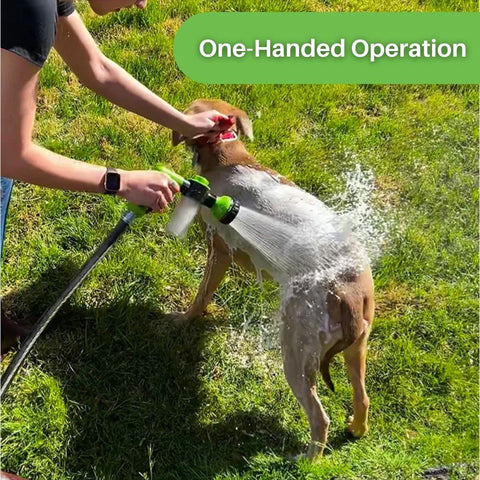 “This bathing gadget has been a life-saver! It's very easy to set up, and the adjustable soap dispenser ensures an even lather, making bathing my dogs efficient and mess-free.”