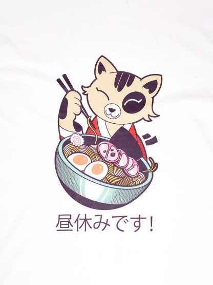 Add a touch of whimsy to your wardrobe with our Noodle Cat T-Shirt, available in crisp white. 100% cotton.