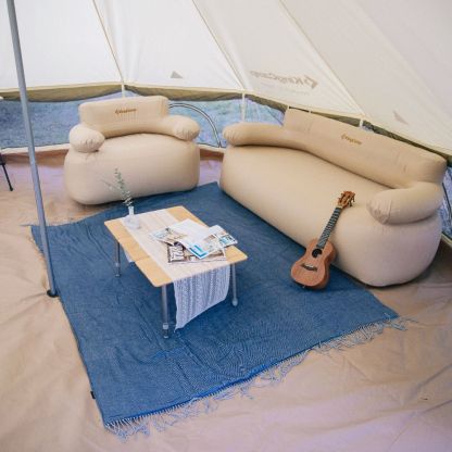 Make relaxation unforgettable this season with the KingCamp Cozy Christmas Lounge Bundle with Sofa & Blanket—the perfect gift for comfort lovers, whether outdoors or at home. This premium bundle features the KingCamp Luxury Inflatable Sofa Set for Two with a foot pump and secure stakes, crafted with eco-friendly PVC and tear-resistant fabric for both durability and comfort. With spacious seating and supportive backrests, it’s ideal for family camping trips, picnics, or beach days.